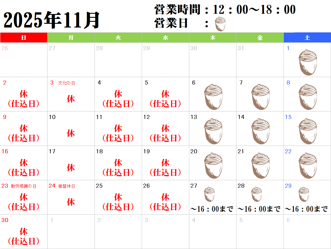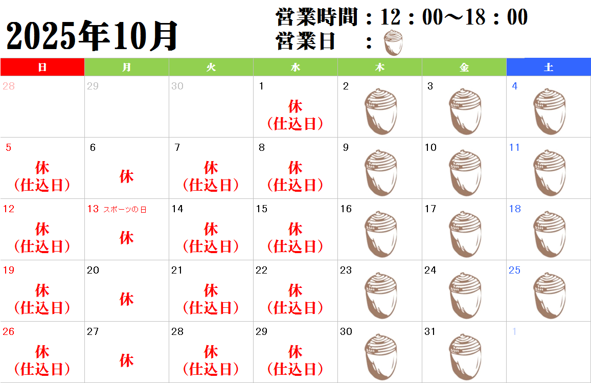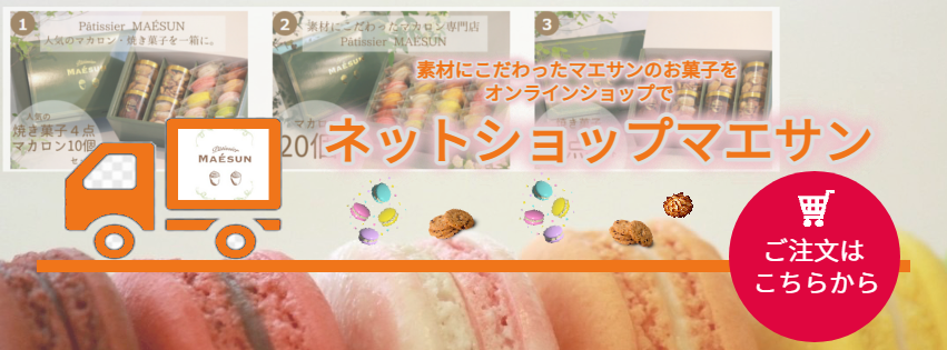 Pâtissier MAÉSUN(パティシエ マエサン)は2020年1月10日沖縄県うるま市にオープンしたマカロンと焼き菓子の販売店です。絵本『ぐりとぐら』よりインスピレーションを受け、どんぐりをモチーフとしたナチュラルな親しみのある店舗づくりを心がけております。