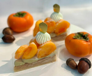 和歌山県産の甘い柿と香ばしいほうじ茶が織りなす、やさしい秋の味わいのタルトです。